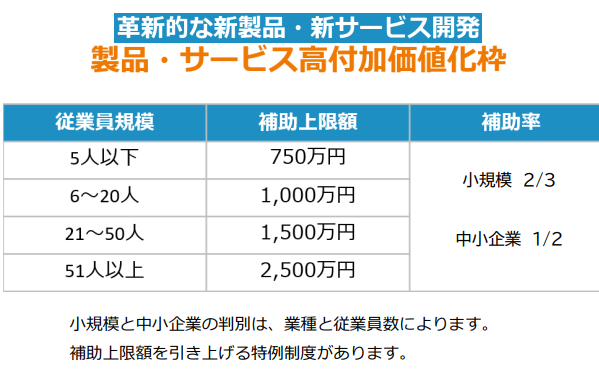 「革新的なサービスの開発」や「生産プロセスの改善」を行うための、設備投資を支援する補助金です。