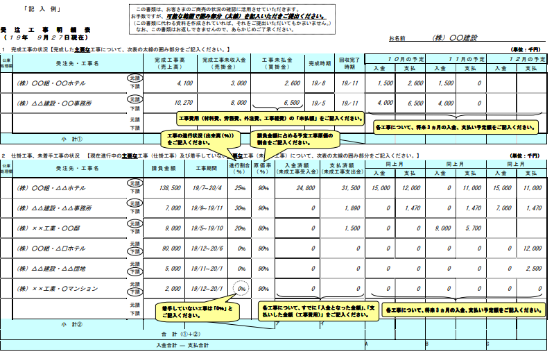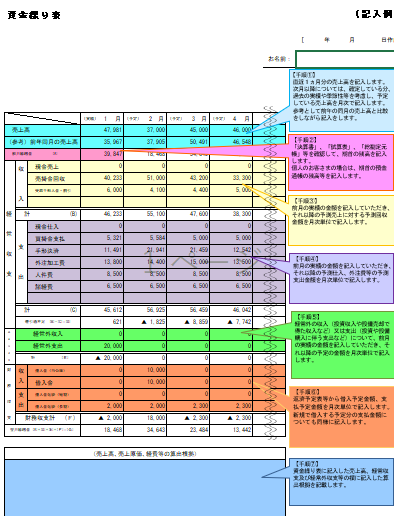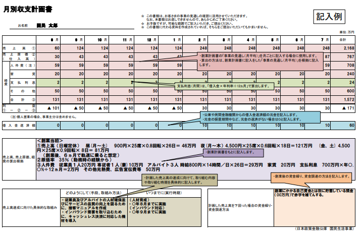 収支計画の記載例