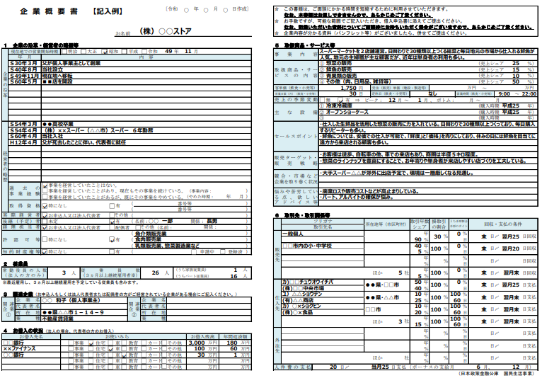 | 2. 経営者の略歴 | 職歴、成果、マネジメント経験、資格 | 事業を成功させる能力があるか | 単なる勤務歴ではなく「売上〇%向上」等の具体的数値 |