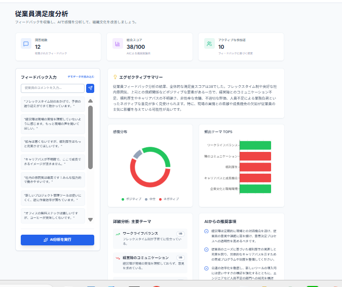 AIによる従業員満足度調査・分析するアプリを作成したい。