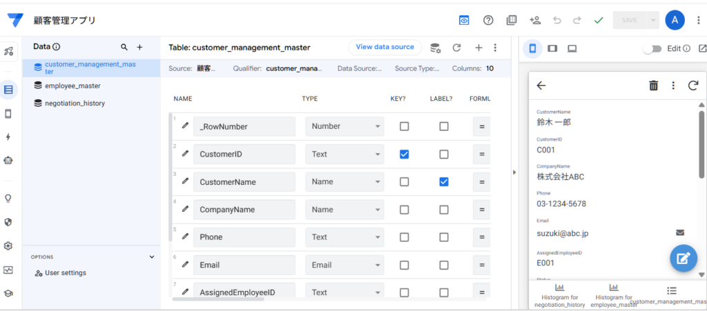 - スピーディな開発: 既存の表データから数分でプロトタイプが作成可能。